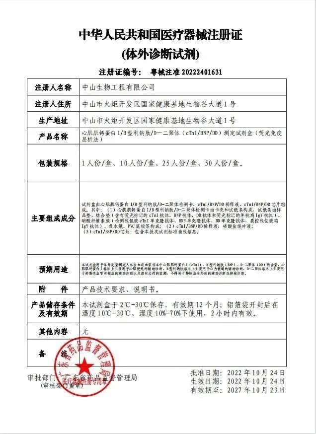 近日,達安基因下屬全資子公司中山生物工程有限公司有3項新產品再獲廣東省藥品監督管理局頒發的《醫療器械注冊證》。中山生物POCT系列產品已累計37項獲注冊證書。