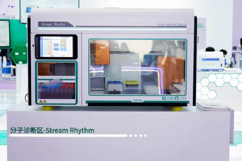其中,達安基因展出的重磅產(chǎn)品——Stream Rhythm便是達安創(chuàng)新研發(fā)格局下轉(zhuǎn)化落地的又一重要成果。該設(shè)備兼容原始管帶蓋上機,自動化完成樣本信息錄入、樣本開關(guān)蓋、樣本轉(zhuǎn)移、核酸提取純化以及PCR體系構(gòu)建等核酸檢測前處理的全過程,真正實現(xiàn)了分子實驗室自動化、集成化以及系統(tǒng)化。