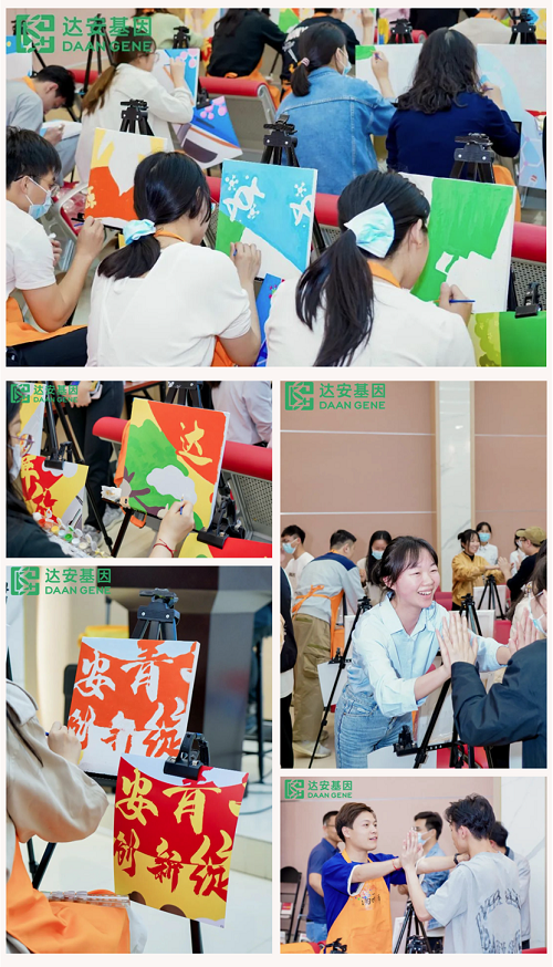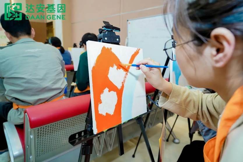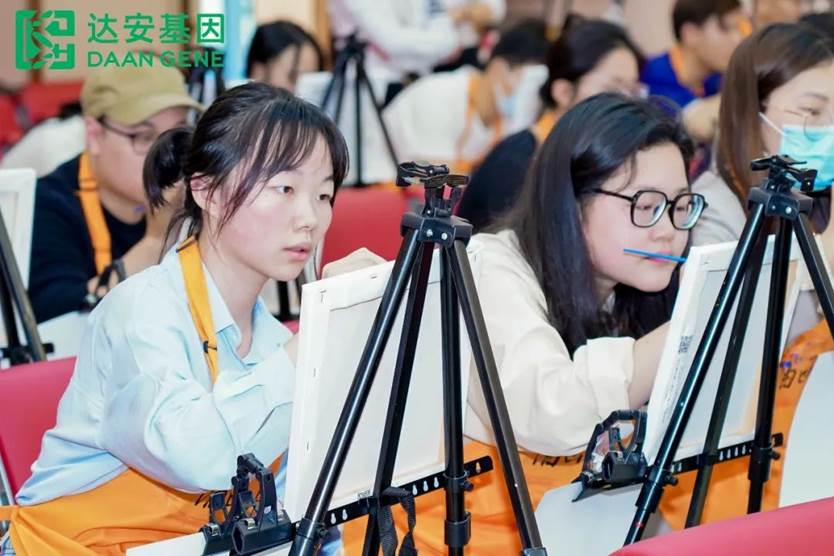 在簡單的破冰熱身環節后,經過專業的油畫老師講解,達安青年用畫筆和顏料,揮灑藝術才能,通過團隊間的協作融合、文化共創,繪聚出一幅飽含了達安企業使命的巨型畫作。